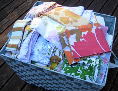 As soon as I saw it, I thought of my overflowing bin of sheet hems. Ever since I started collecting vintage sheets, I've been cutting off the hems and saving them. I had no idea what I would make with them, but now I do! Thank you so much, Jen & Melissa!